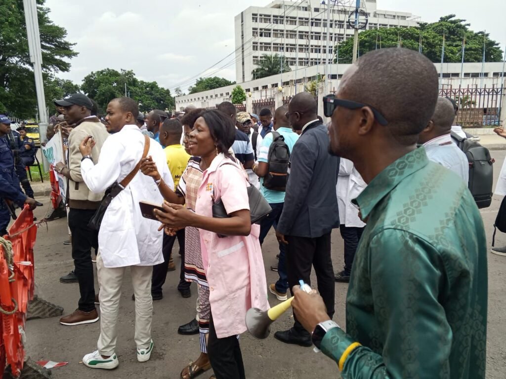 Chants, banderoles et sifflets sont au rendez-vous pour dénoncer ce qu’ils qualifient de blocage au niveau du ministère des Finances Doudou FWAMBA , assimilé à de la mauvaise foi, selon eux.