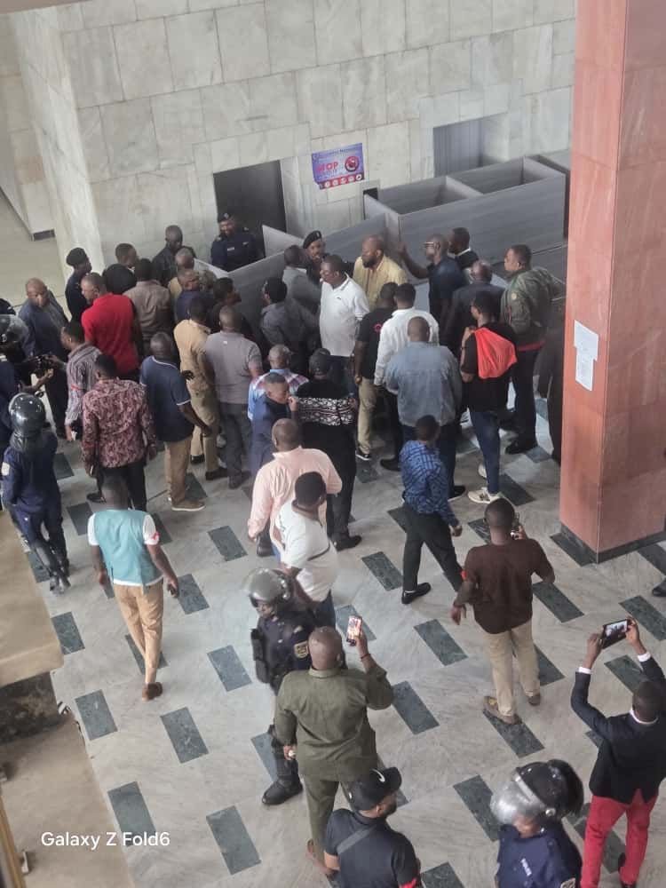 Munis de sifflets et arborant des bandeaux rouges sur la tête, les manifestants ont envahi le hall de l’Assemblée Nationale avant d’occuper la salle de spectacle. Ils ont formulé plusieurs revendications.