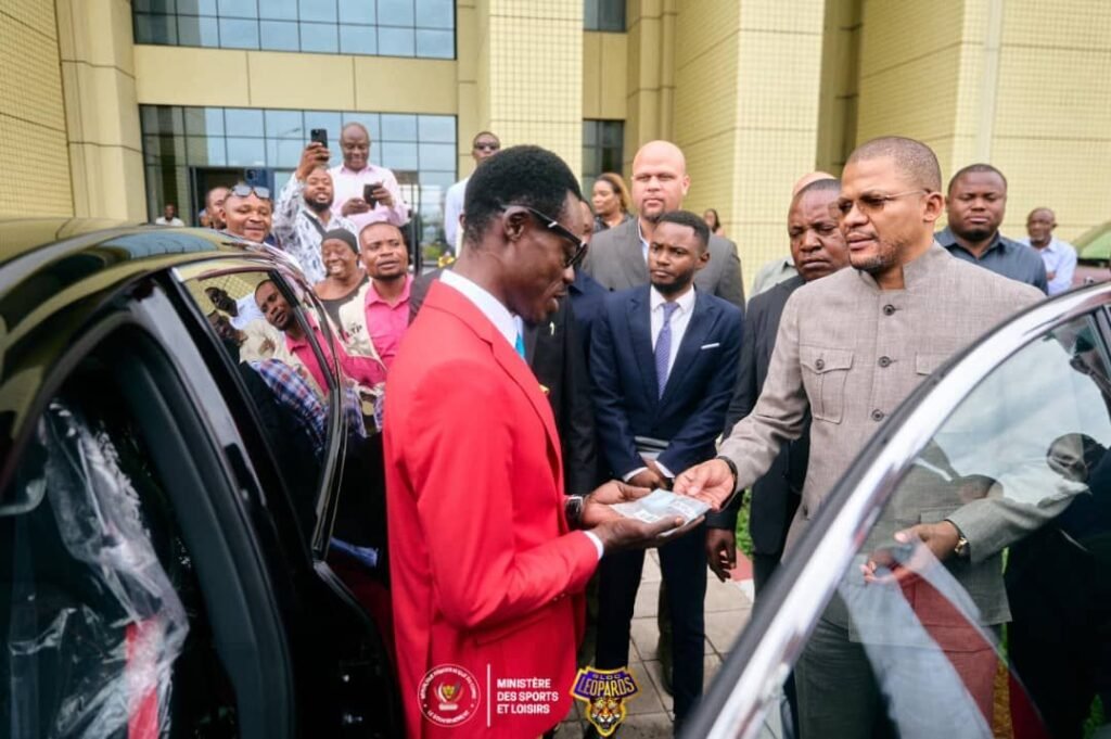 Visiblement très heureux, Lumumba a reçu des mains du ministre une jeep flambant neuve de marque Jetour, fruit du partenariat entre ce fabricant automobile et le ministère des Sports. On se souviendra que cette promesse avait suscité des polémiques il y’a peu en raison du retard pris dans sa concrétisation, alors même que le célèbre supporter des Léopards avait été officiellement invité par le Maroc pour assister à la finale de la 35ᵉ édition de la CAN.
